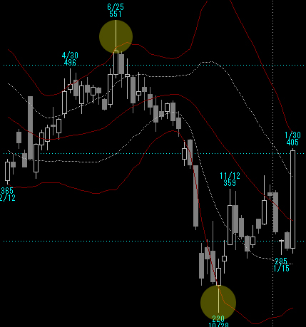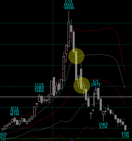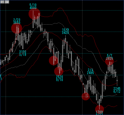 ボリンジャーバンドの1つの見方として、±2σの領域を超えた値動きが