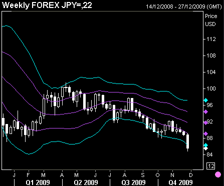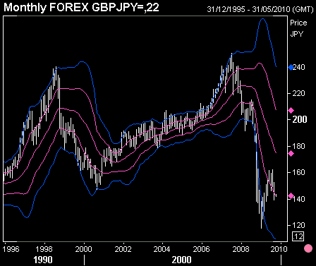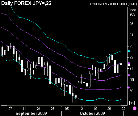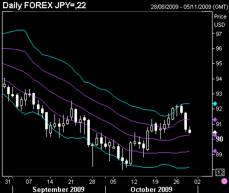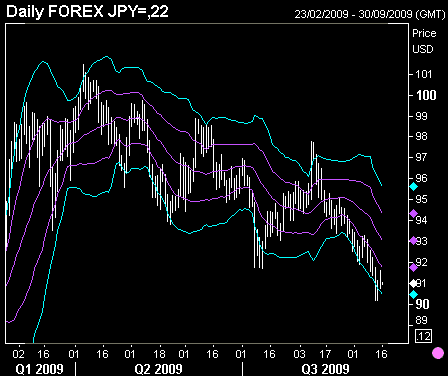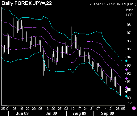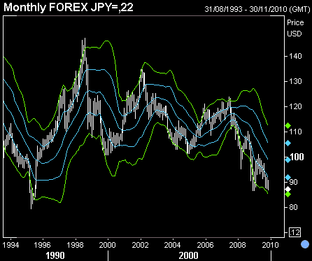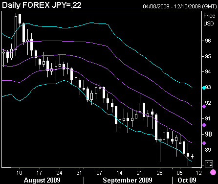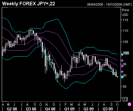 チャートを見ると、2008年10月は青い線を突き抜けるほどドルが下落して