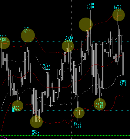 が描画されています。見ただけで値動きの特徴が感じられますが、