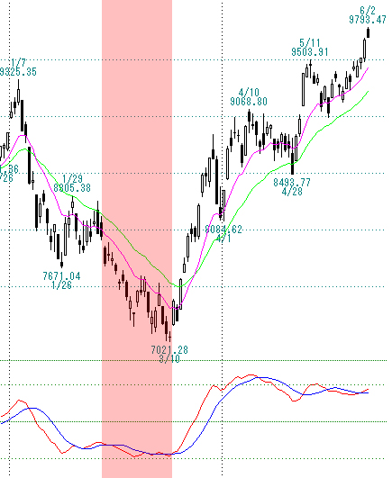 ▼日経平均のMACD分析 (チャート:GCハロートレンドマスター/ゴールデンチャート社)