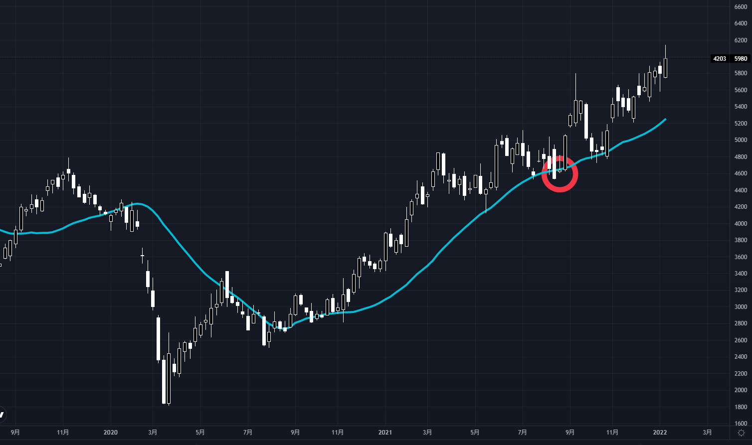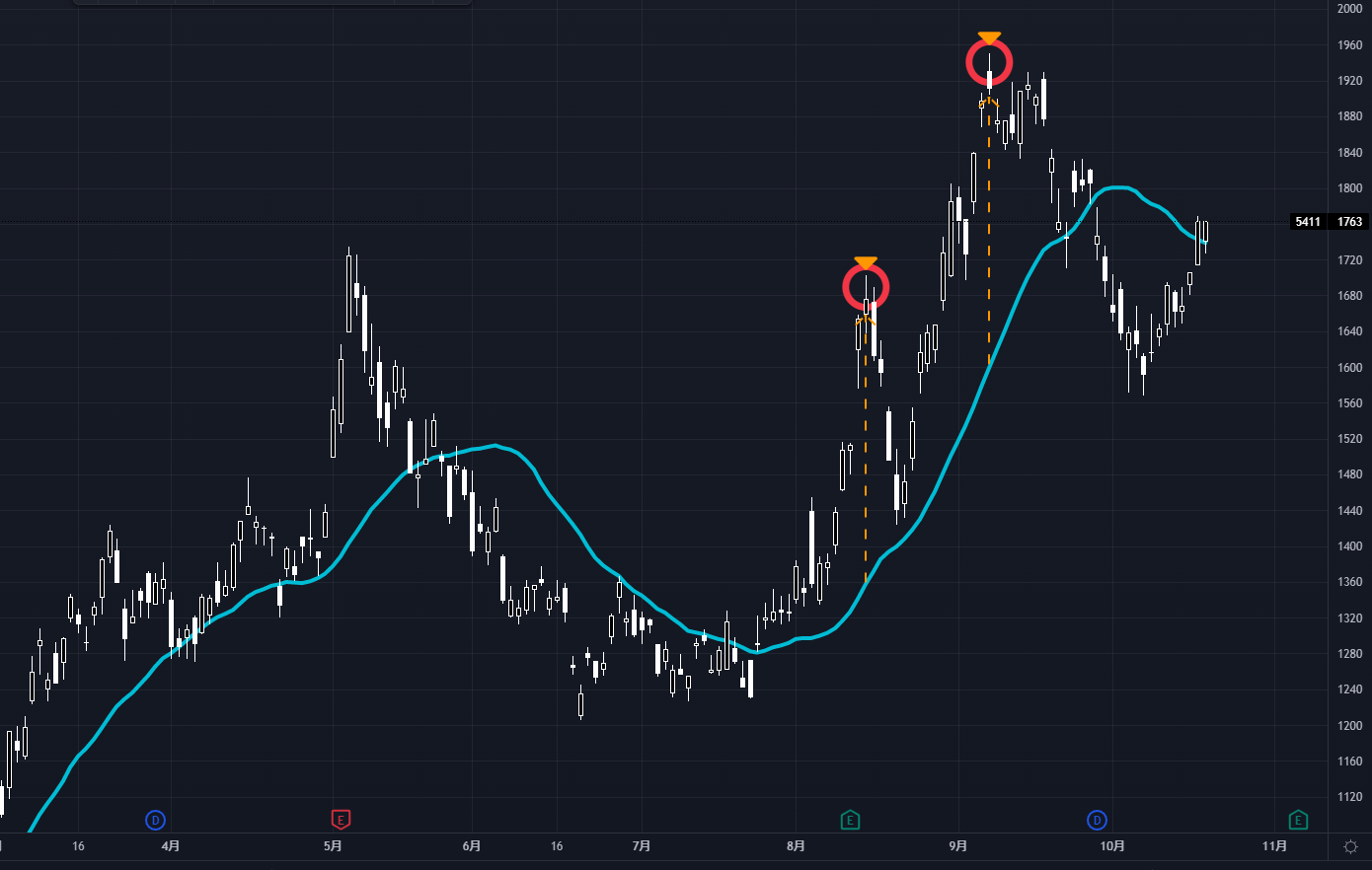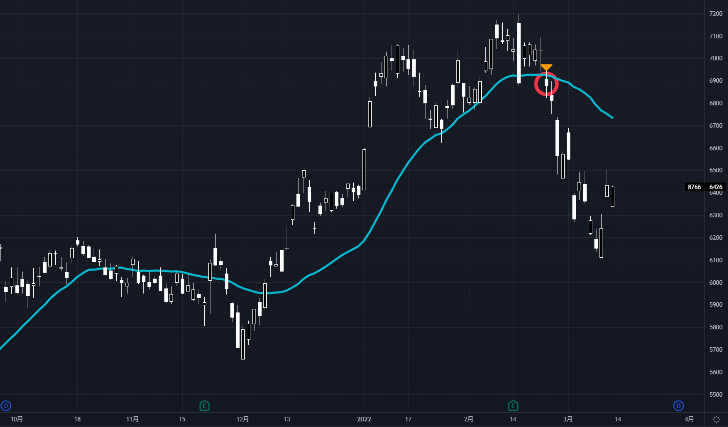 この株価の動きにより、後々、移動平均線が上向くことにつながります。移動平均線の反転をいち早く捉えるトレード手法といえます。
