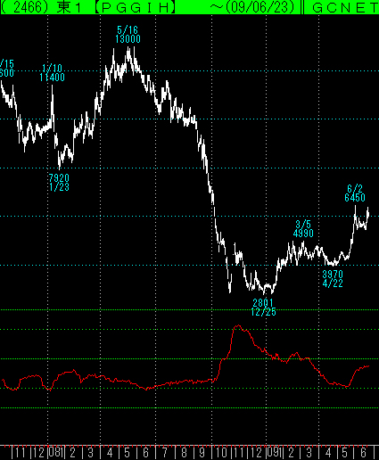 ※PGGIH(日足)のヒストリカル・ボラティリティ (チャート提供:GCハロートレンドマスター)