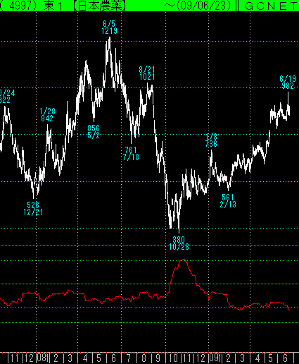 ※日本農薬(日足)のヒストリカル・ボラティリティ (チャート提供:GCハロートレンドマスター)