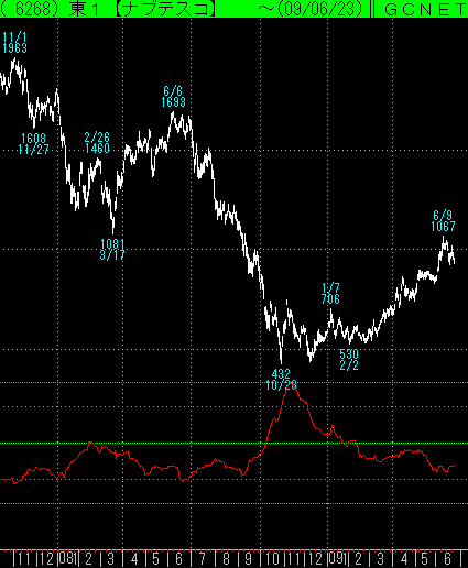 ※ナブテスコ(日足)のヒストリカル・ボラティリティ (チャート提供:GCハロートレンドマスター)