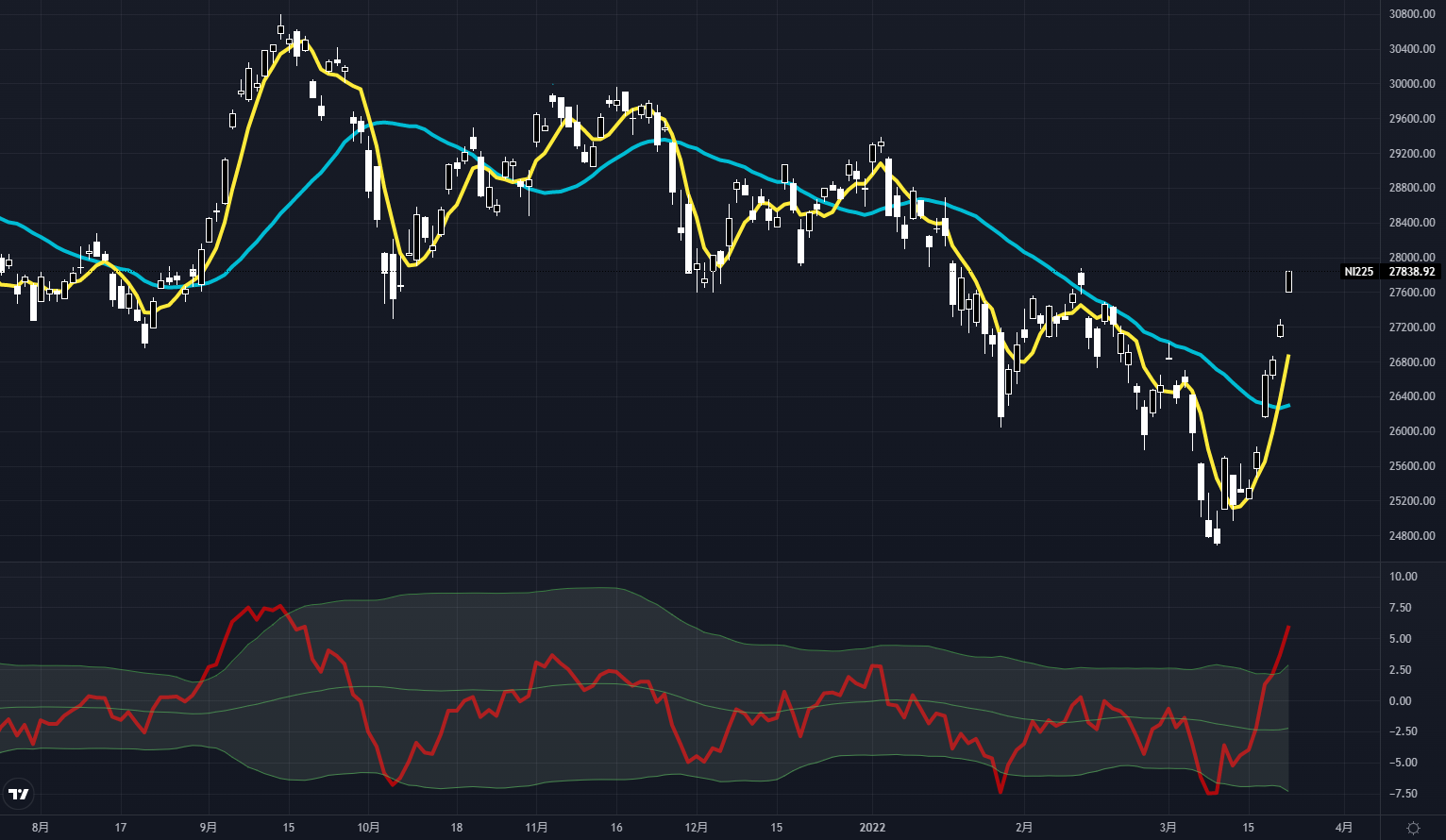 マイナスに大きく下落したところでは買い、のサインとして判断します。