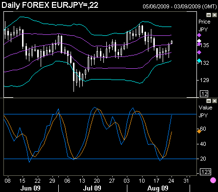3本並んで動いています。わずかではありますが、早めに動いている赤線が%Kです。